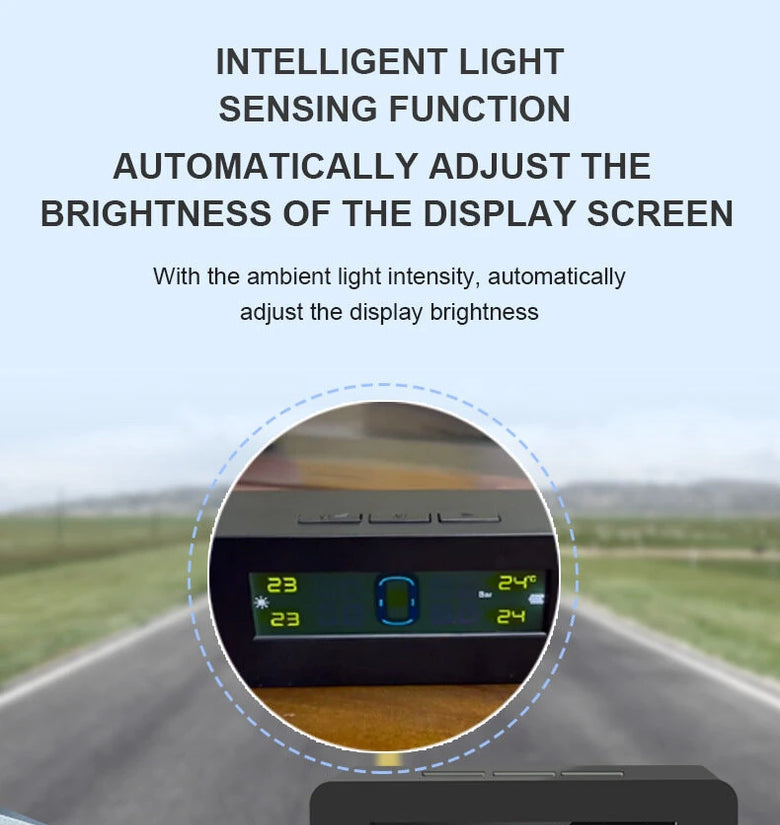 - 24-Hour Monitoring with Timely Alerts: Provides round-the-clock monitoring of both tire pressure and temperature. Immediate alerts are triggered for abnormalities such as slow leaks, high tire temperature, or sensor failures, ensuring that you're always informed about the state of your tires.