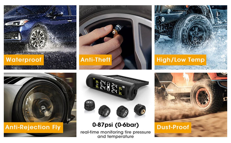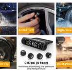 - Advanced Sensors for Efficient Power Consumption and Accurate Readings: Equipped with four high-performance external sensors, our TPMS delivers precise tire pressure measurements with minimal errors. Designed for low power consumption, these sensors ensure extended operation and reliability. The sleek and lightweight design guarantees dependable performance under various driving conditions.