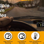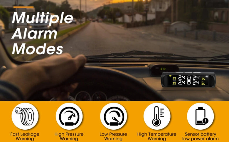 - Comprehensive Alert Modes and User-Friendly Settings: Our tire pressure monitoring system offers five critical alert modes: Fast Leak Detection, High/Low Pressure Alert, High Temperature Warning, and Low Sensor Voltage Notification. It automatically uses the current pressure as a baseline post-setup, enabling simple adjustment of alert thresholds for timely notifications to ensure tire safety.