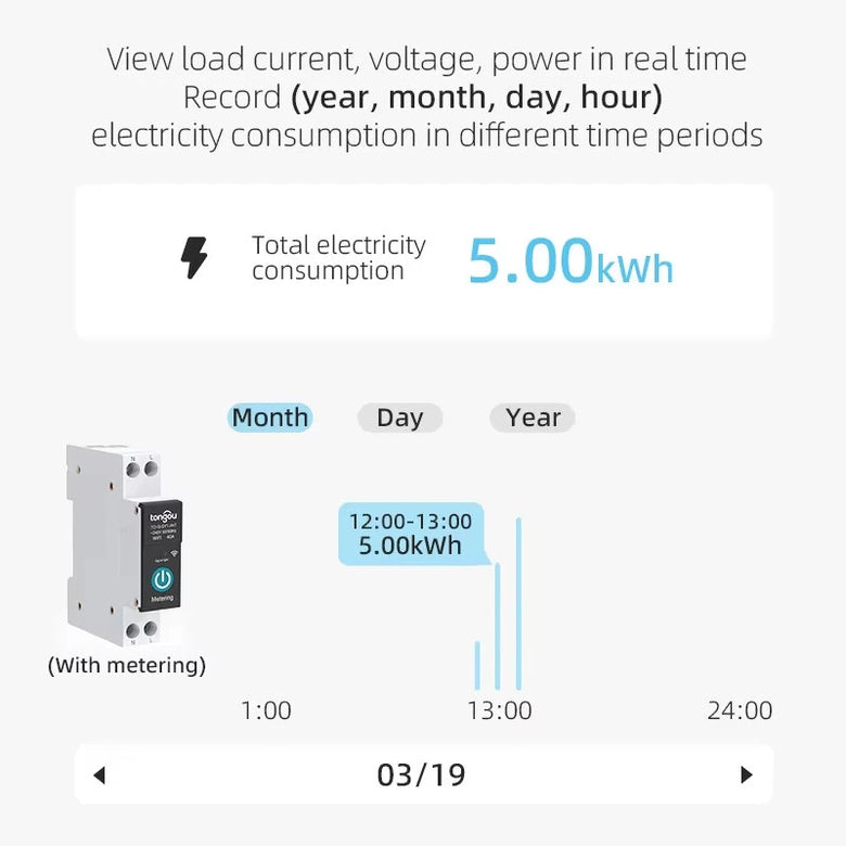 4. Real-Time Monitoring: Monitor electricity consumption and view load current, voltage, and power in real-time. (TO-Q-SY1-JWT model only)