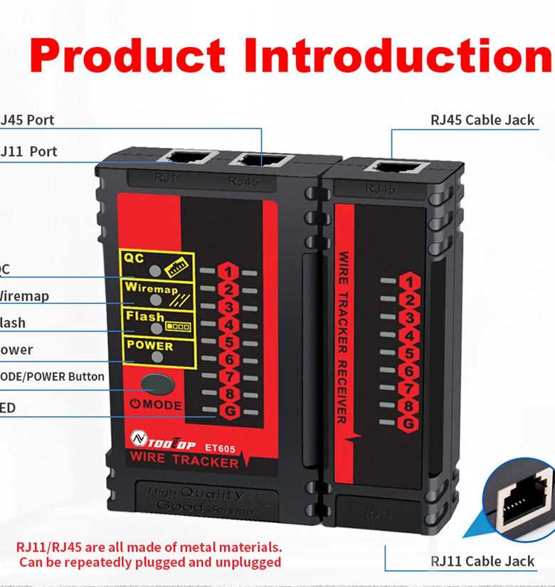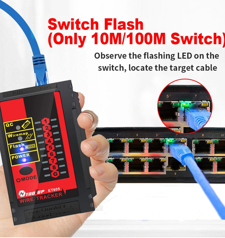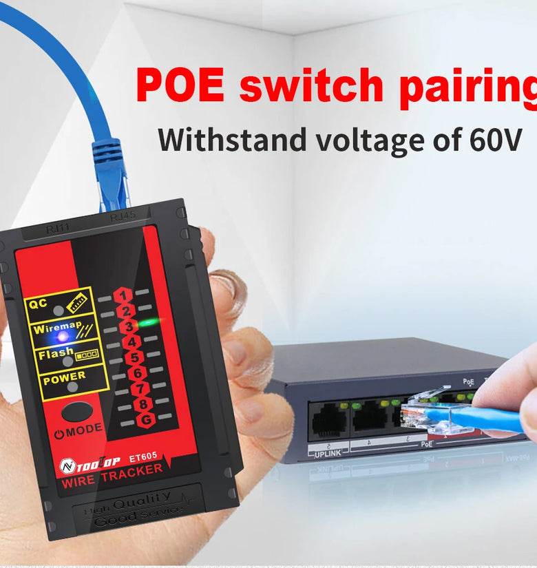 TOOLTOP ET605 LAN Network QC Cable Port Tester Pairing Check Switch Flash POE Withstand 60V Telephone Network Cable Line Finder