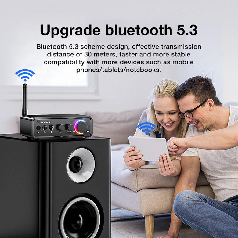 • TPA3116D2 100W+100W bluetooth Amplifier Audio Digital Power Amplifier RGB Dual Channel Amp Built-in DSP Support RCA Coaxial Optical 6.5mm Microphone Karaoke Wireless Adapter
