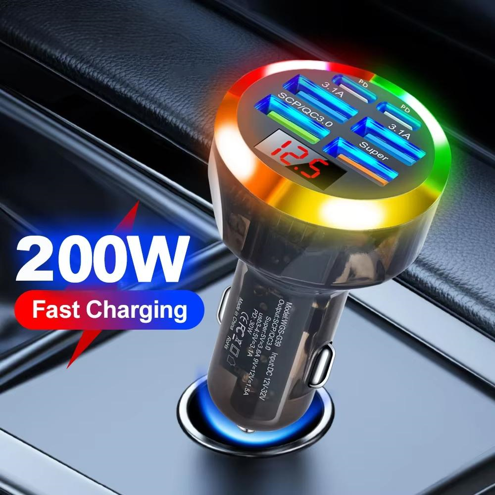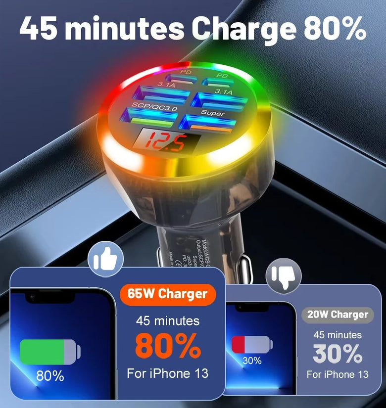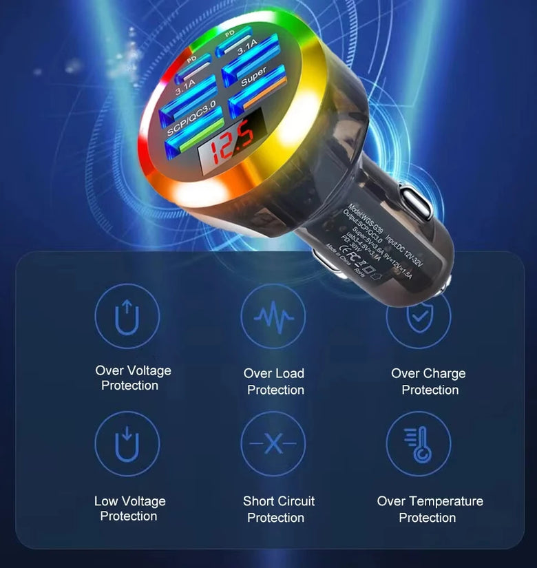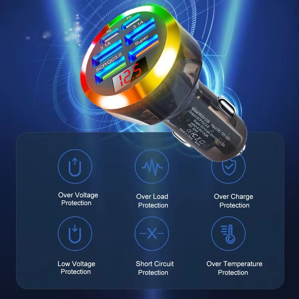 1. 6-in-1 Super Fast Charging: Equipped with six ports, including two PD, it enables simultaneous charging of multiple devices at ultra-fast speeds. Compatible with iOS and Android devices.