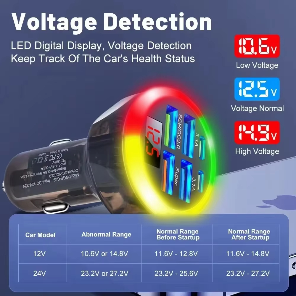 2. Voltage Monitoring Display: LED digital screen instantly provides accurate voltage readings, helping monitor your car's battery health while charging.
