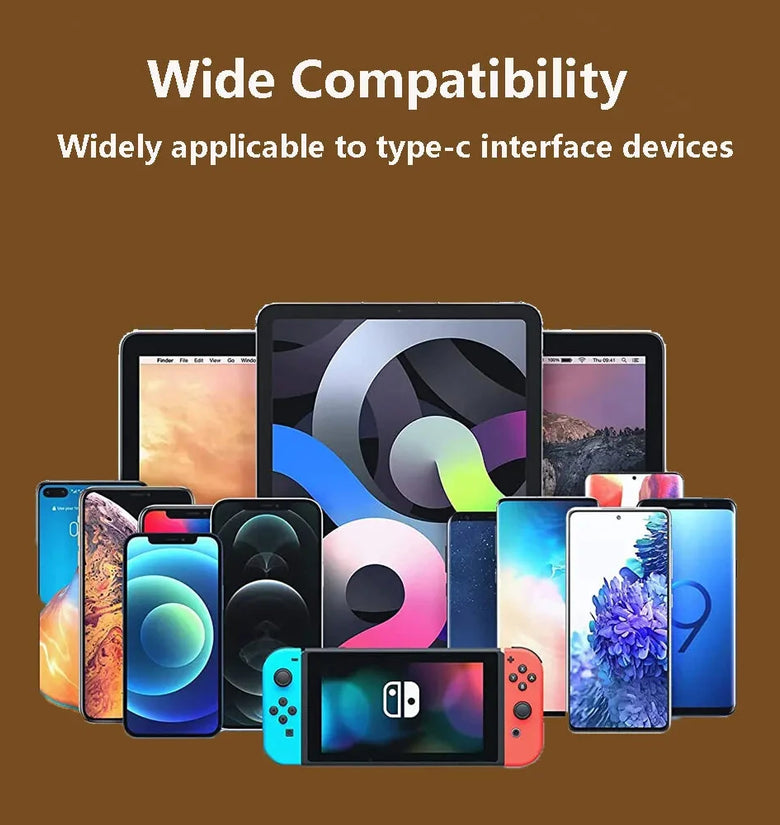 Compatible with a wide range of Type-C devices including smartphones, tablets, laptops, and TVs.