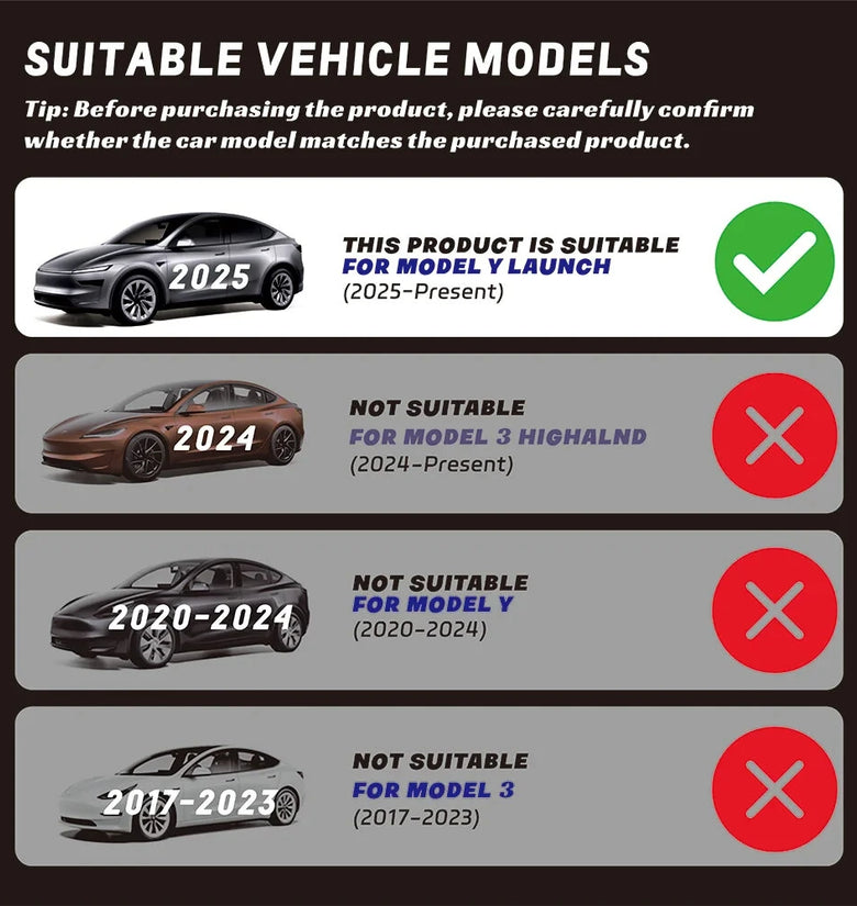 Applicable Model: for Tesla Model Y LAUNCH 2025 version