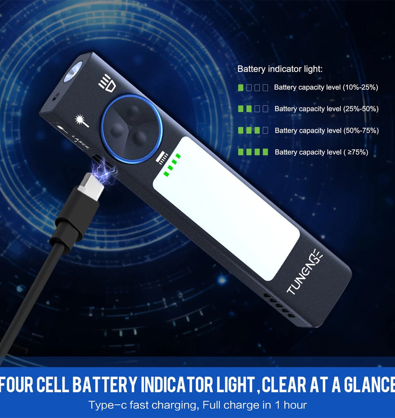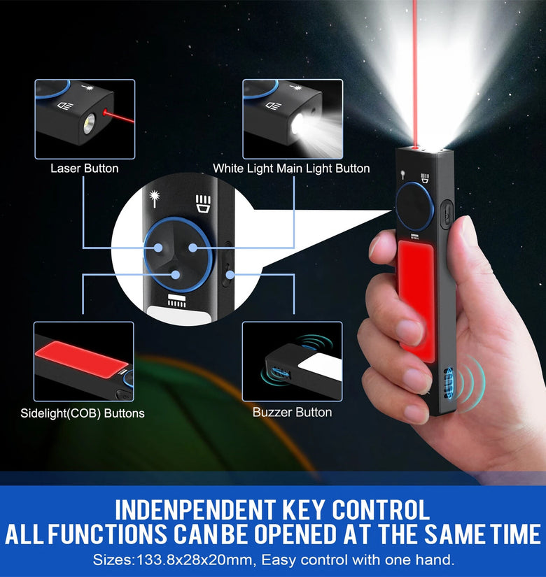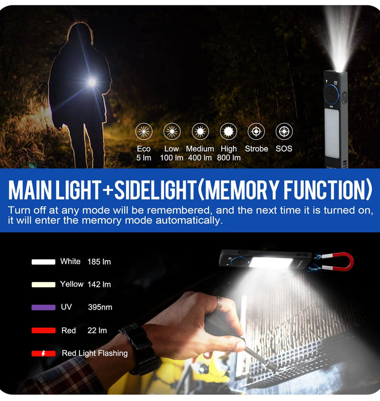 1.Super Bright LED Light: Five brightness modes, up to 800 lumens, with a reachable range of 200 meters (656 feet). The Adventurer UV has separate buttons for each function, making it easier to operate.2.UV light: This UV flashlight detects pet urine and stains, making it ideal for detecting cleanliness in kitchens, bathrooms, and hotels. It has a wavelength of 365nm.3.Multifunction: Adventurer UV has 5 side light modes (white light.yellow light, 395 purple light, red light, red light flash), it has a powerful buzzer with 120dB(3 sound modes), perfect for outdoor distress, each function has a memory function, no need to worry about repeated operations.4.Portable Design: EDC flashlight size: 5.26*1.1*0.78in, weight only98 grams, daily carry does not take up any space, flashlight equippedwith metal clips can be clamped in pockets, backpacks, shirts, tailmagnets, can be adsorbed on the metal, night reading/work moreconvenient.USB-C Charging: The flashlight is powered by an 1000 mah rechargeable polymer battery, and the charging cable uses a Type-C interface, so there is no need to worry about finding a charging cable.5.Multi-Purpose: TUNENGE UV flashlight is portable and can detect pet urine, fluorescent agents, cat moss, kitchen stains,bathroom stains, banknotes, cosmetic fluorescent agents, etc. It can also be used for outdoor emergencies, camping, hiking, outdoor distress, etc.
