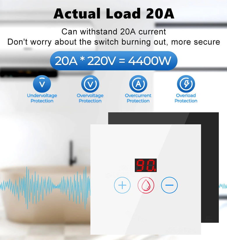 4. Countdown Setting: Adjustable countdown timer (10 – 90 minutes) to shut off the water heater and prevent excessive electricity use.