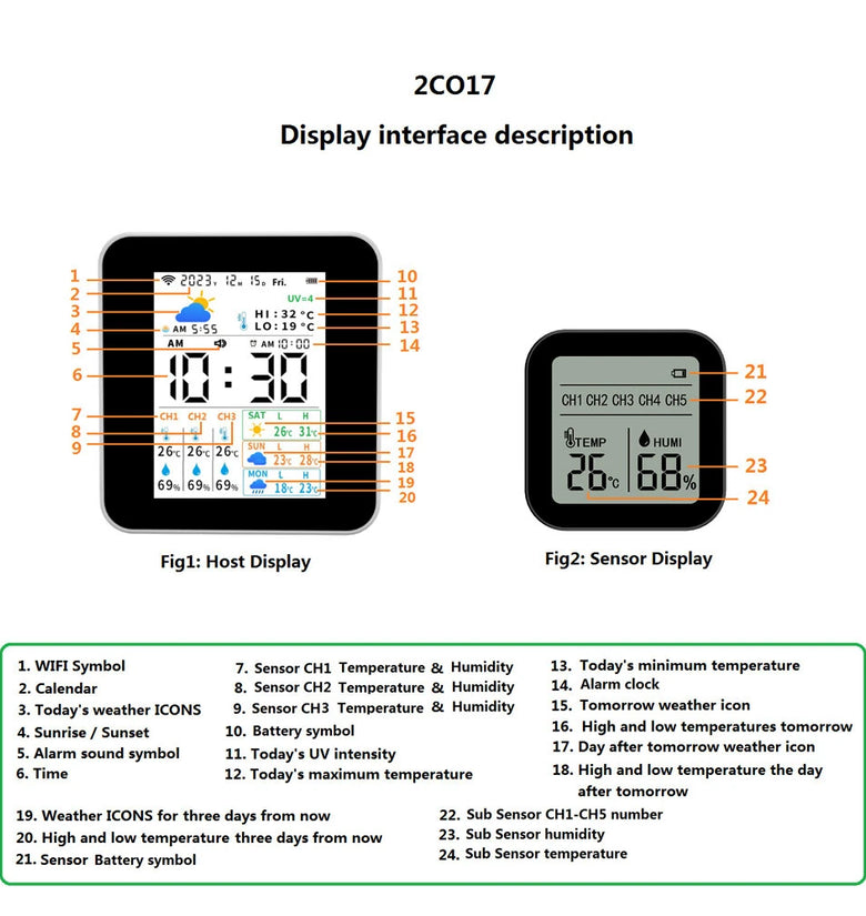 2. Multi-location Sensing: Supports up to 3 wireless temperature and humidity sensors, allowing you to monitor multiple indoor and outdoor locations simultaneously with precision data tailored to each sensor.