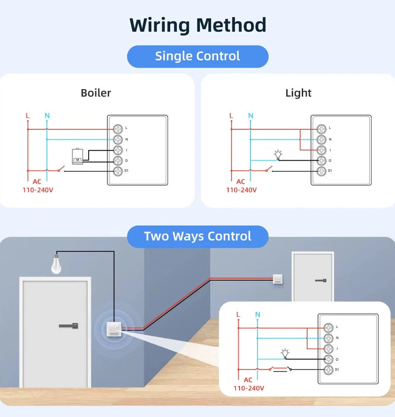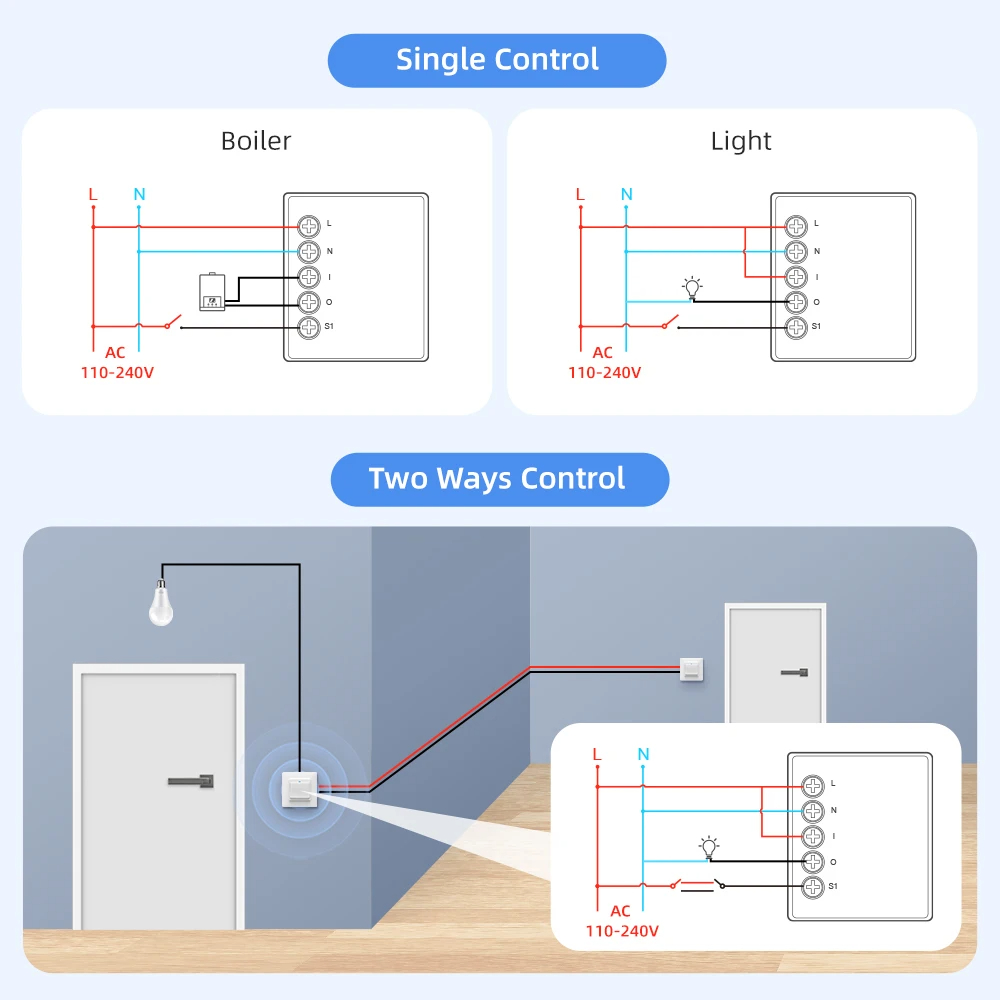 5. Two-way Control: Can be installed for single-switch operation or two-way control setups.
