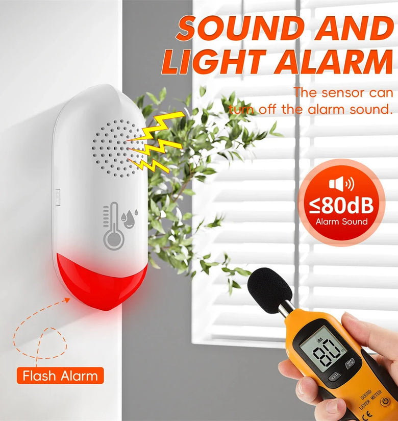 2. Sound and Light Alarm: Generates alarms with 80dB sound and flash light for immediate alerts.