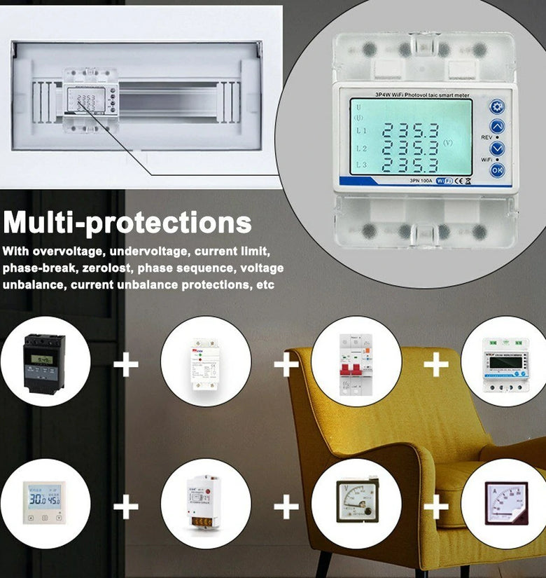 • Tuya WiFi 3P4W Electric Energy Meter Three Phase Reclosure Switch Intelligent Reclosing Protector