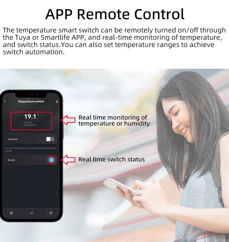 1. APP Remote Control: Control your device remotely via Tuya or Smart Life app with real-time monitoring of temperature and humidity.