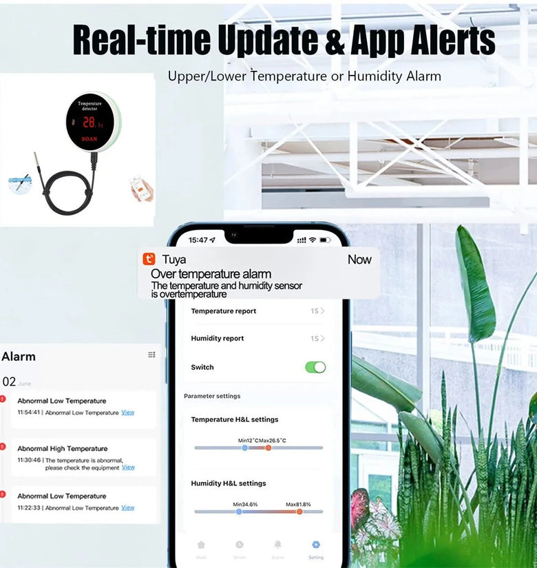 ·Intelligent signal analysis technology·Real temperature Humidity compensation technology·Resistance to radio frequency interference (20Vm-1GHZ)·WIFI wireless signal transmission·Microprocessor control·Low power circuits design·Manufactured by SMT process·Real temperature and humidity data acquisition and export· The device shows offline after WIFI disconnected 3 minutes• The device and terminal transmit data every 3 seconds