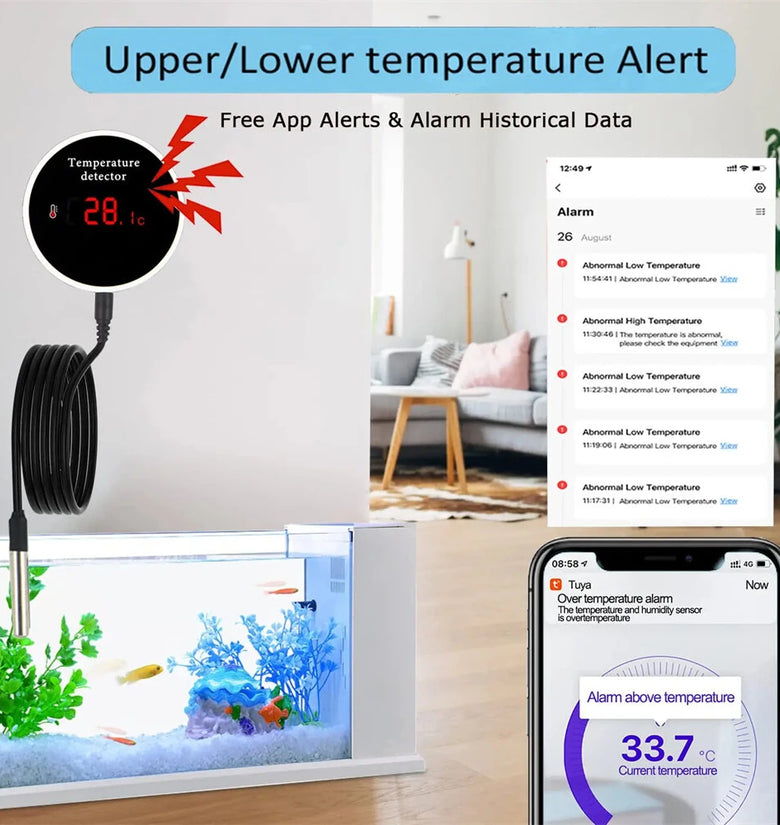 Model: TH-80Working voltage: 5V1A Power: <5WBuilt-in rechargeable battery: 3.7V 600MABattery standby time: ≈ 4 hoursAlarm indication: The digital tube number flashes.Pairing indication: green indicator flashesDetecting temperature: -20 ℃ - +80℃Detecting humidity 0%—— (no condensation)Temperature humidity accuracy: 0.5℃ 1%RHMeasurement error: ±1 ℃ ±3%RHWIFI band: 2.4GBuzzer alarm time: default 15 seconds uncontrollableSize: 90mm* 63mm *25mm
