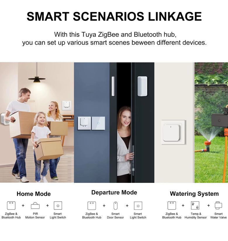 5. Wide Application: Compatible with sensors, switches, smart plugs, and more for diverse smart scenarios like watering systems and security.