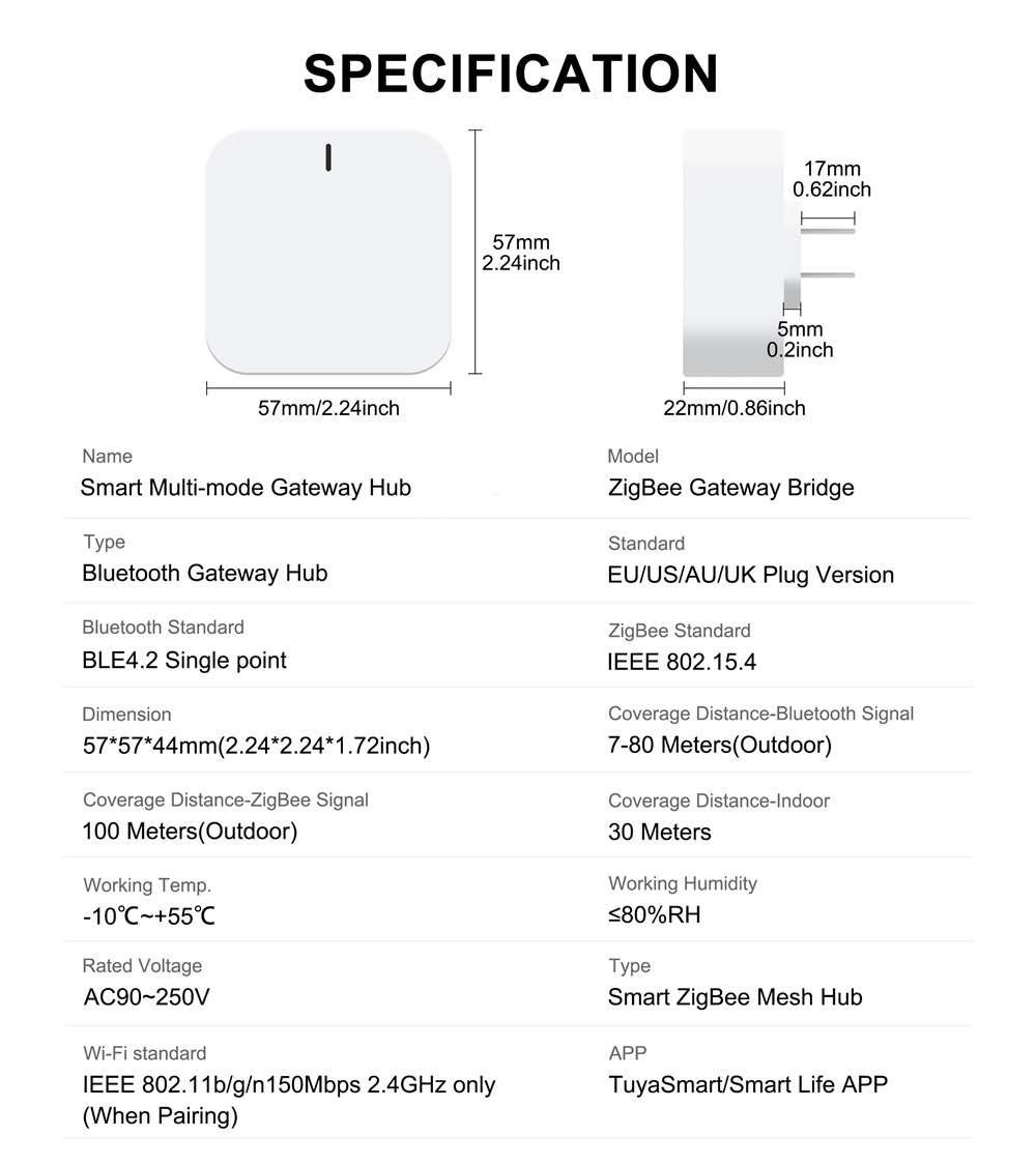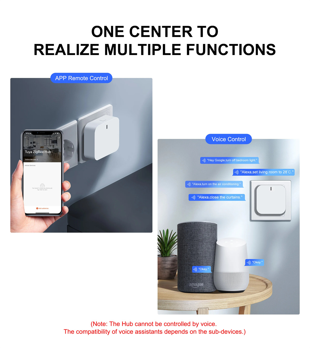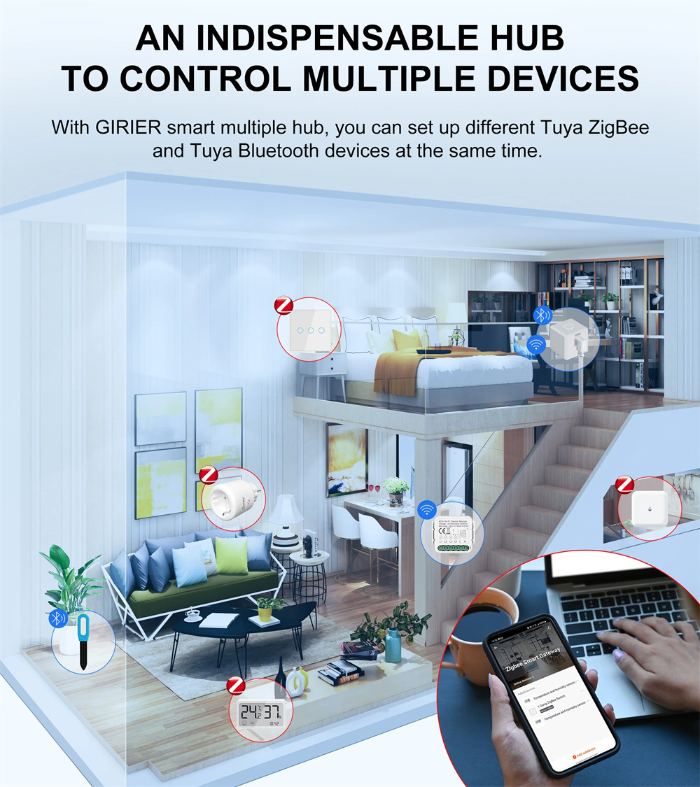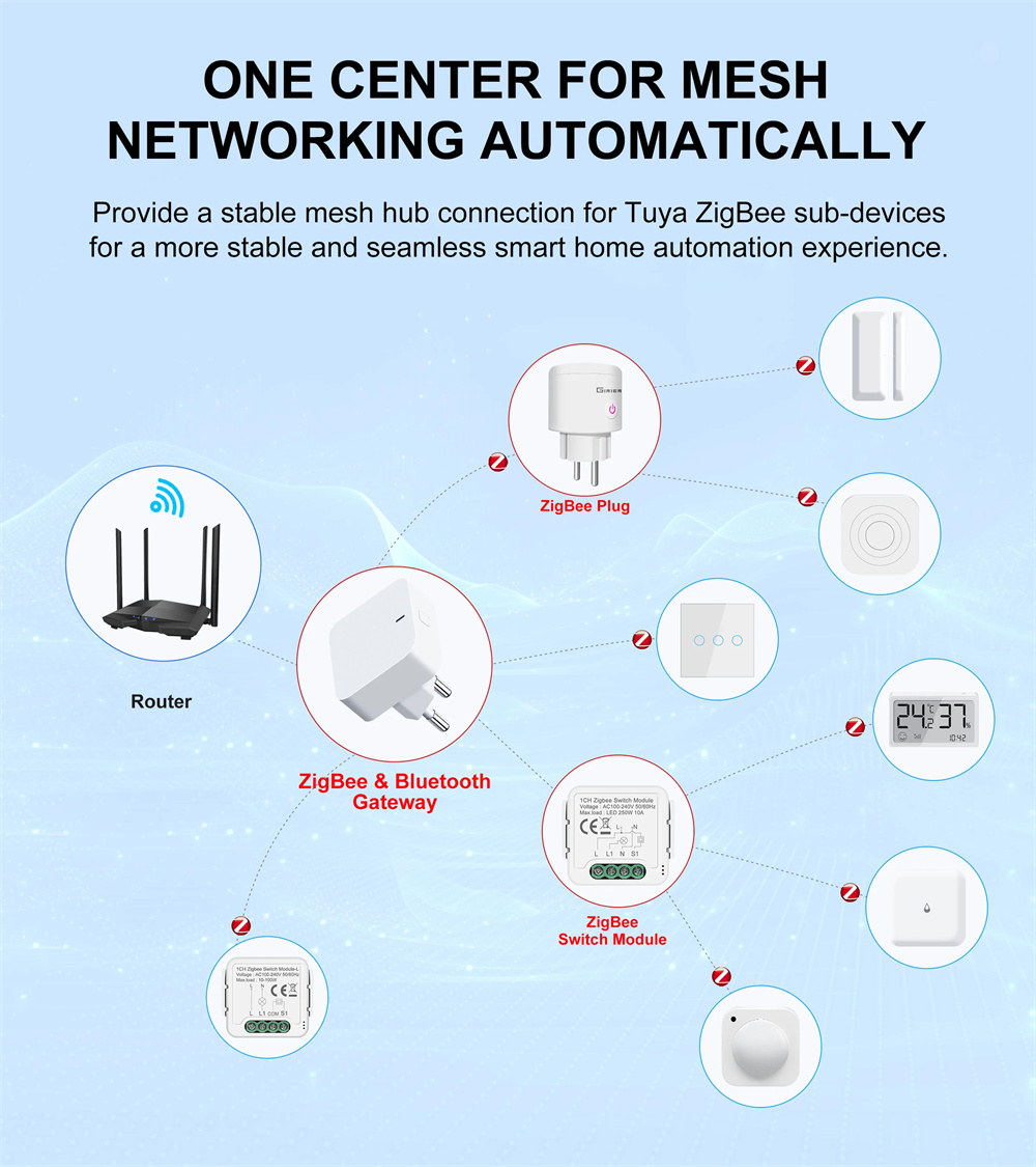 1. Multi-mode Gateway: Supports both Tuya ZigBe and Tuya bluetooth devices for seamless home automation.