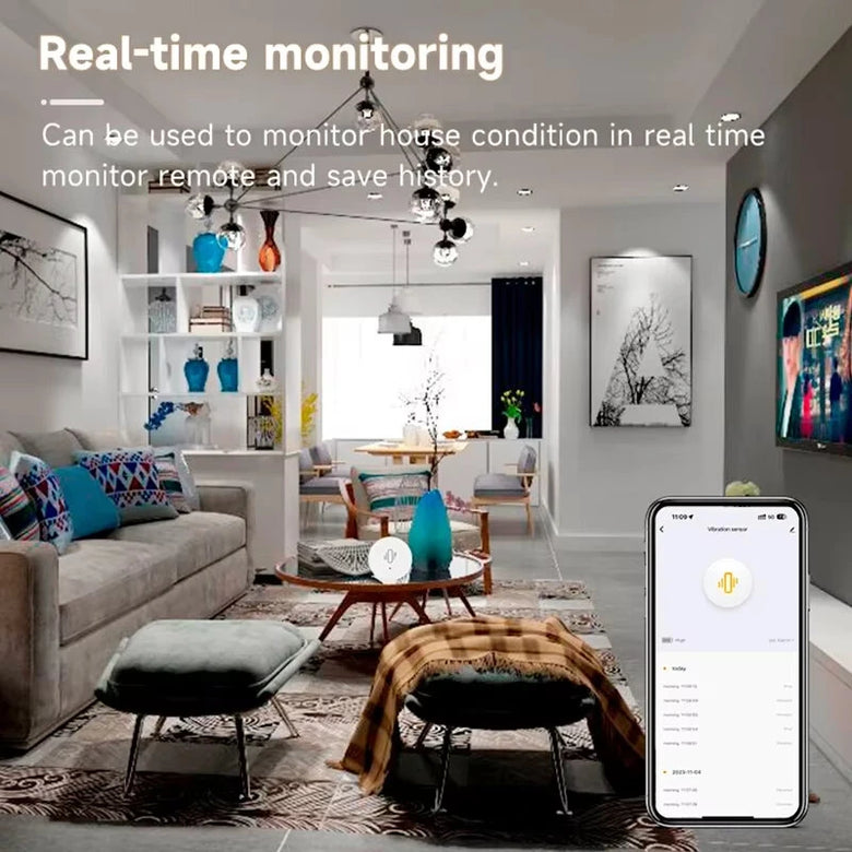 • Tuya ZigBe Smart Vibration Sensor Real Time Monitoring Door Window Detection Alarm Smart Home Security Protection System