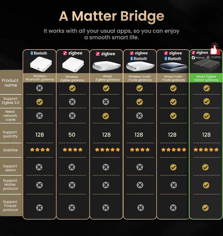 1. Supports both Matter and Zigbe protocols for versatile connectivity.