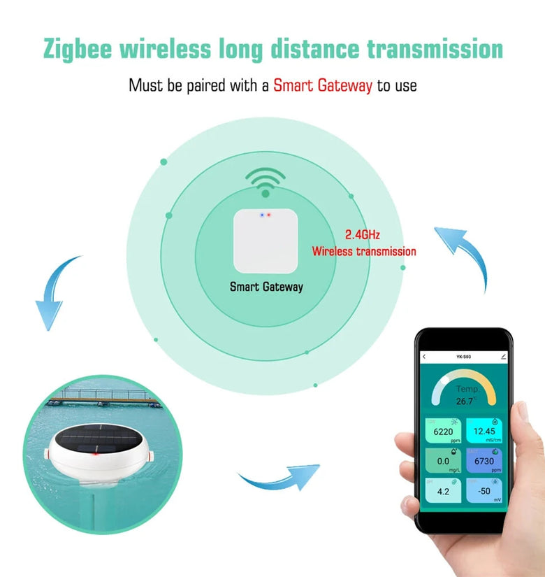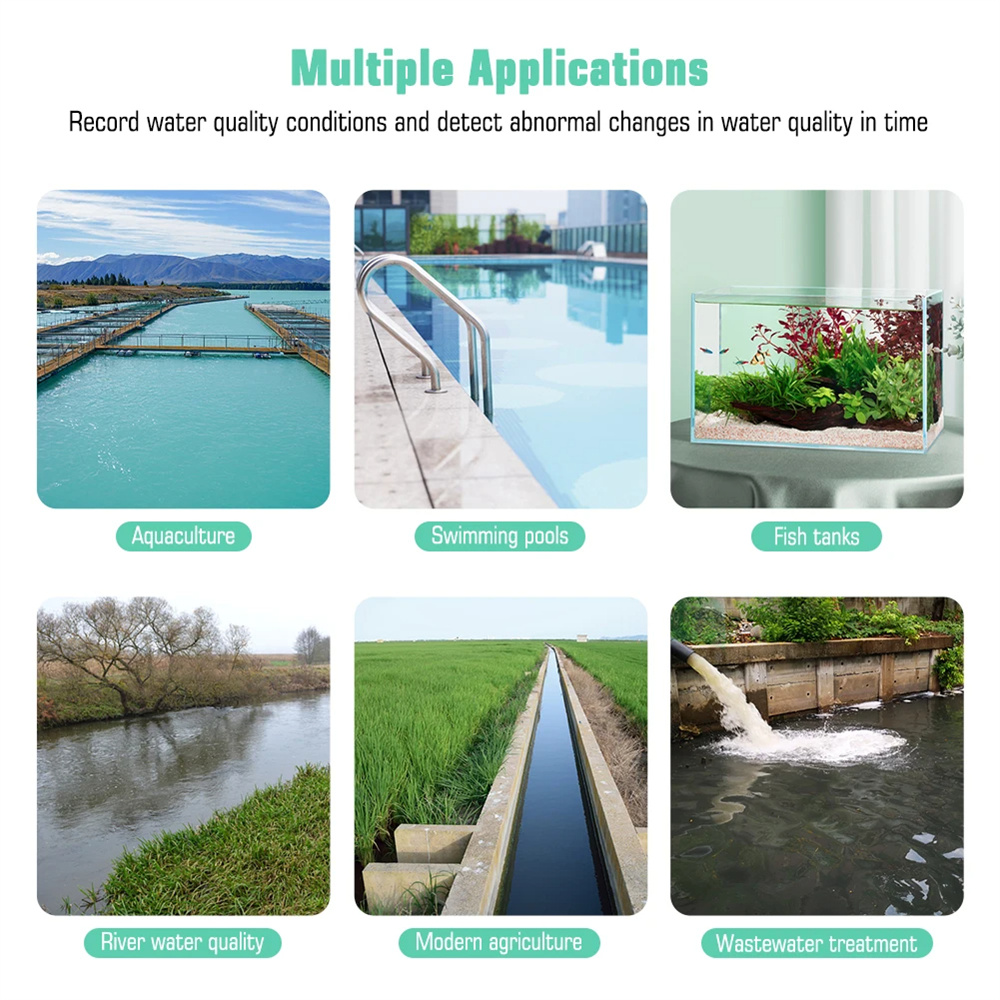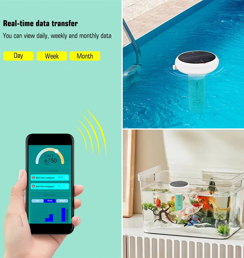• Tuya Zigbe WiFi Pool Water Quality Tester 7-in-1 Monitoring pH Chlorine Salinity Solar USB Charging App Control