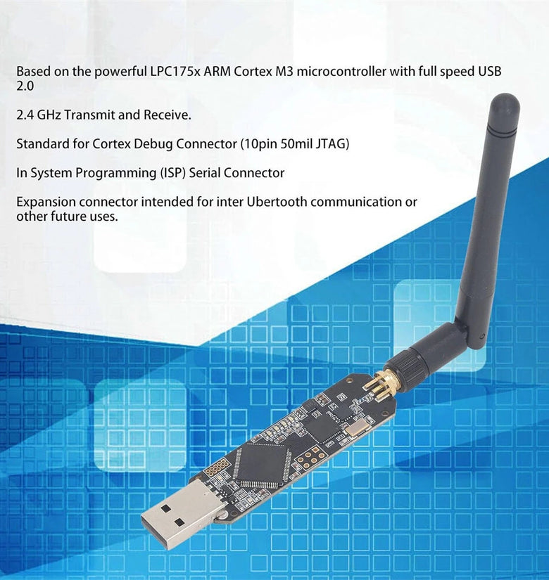 3. Powerful Microcontroller: Equipped with the LPC175x ARM Cortex M3 microcontroller, Ubertooth One offers robust processing power coupled with full-speed USB 2.0. This sets the stage for smooth, fast data transmission and high-level performance in Bluetooth development tasks.