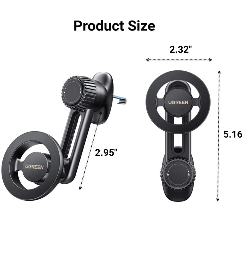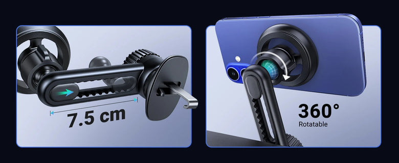 - Flexible Viewing Angles: Featuring a 360-degree rotatable ball joint and swing arm, this car vent magnetic phone mount offers versatile adjustment for both vertical and horizontal views. It allows the head to slide up and down within a 2.95-inch range, providing the perfect viewing angle for any situation.