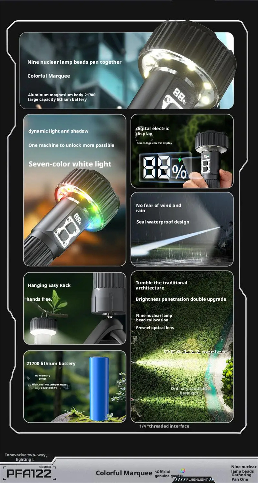 Featuring fast charging technology, this flashlight ensures you're always ready for use, even in emergency situations.
