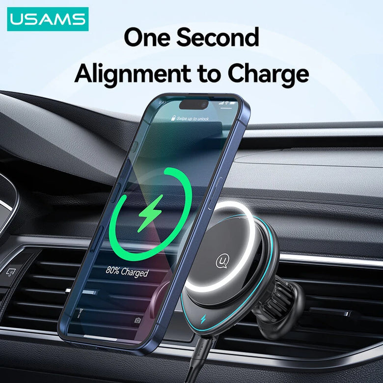 • USAMS US-CD222 Wireless Magnetic Car Phone Holder 360 Rotary Air Vent Mount Stand for iPhone 15 14 13 for Xiaomi 14pro for Samsung Galaxy S24 for Huawei Mate60 Pro