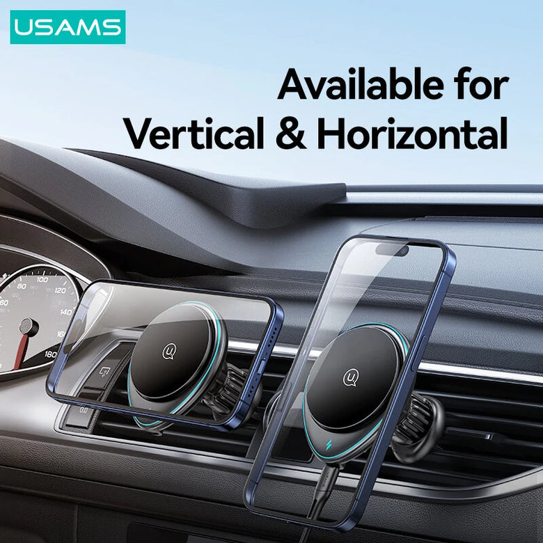 USAMS US-CD222 Wireless Magnetic Car Phone Holder 360 Rotary Air Vent Mount Stand for iPhone 15 14 13 for Xiaomi 14pro for Samsung Galaxy S24 for Huawei Mate60 Pro