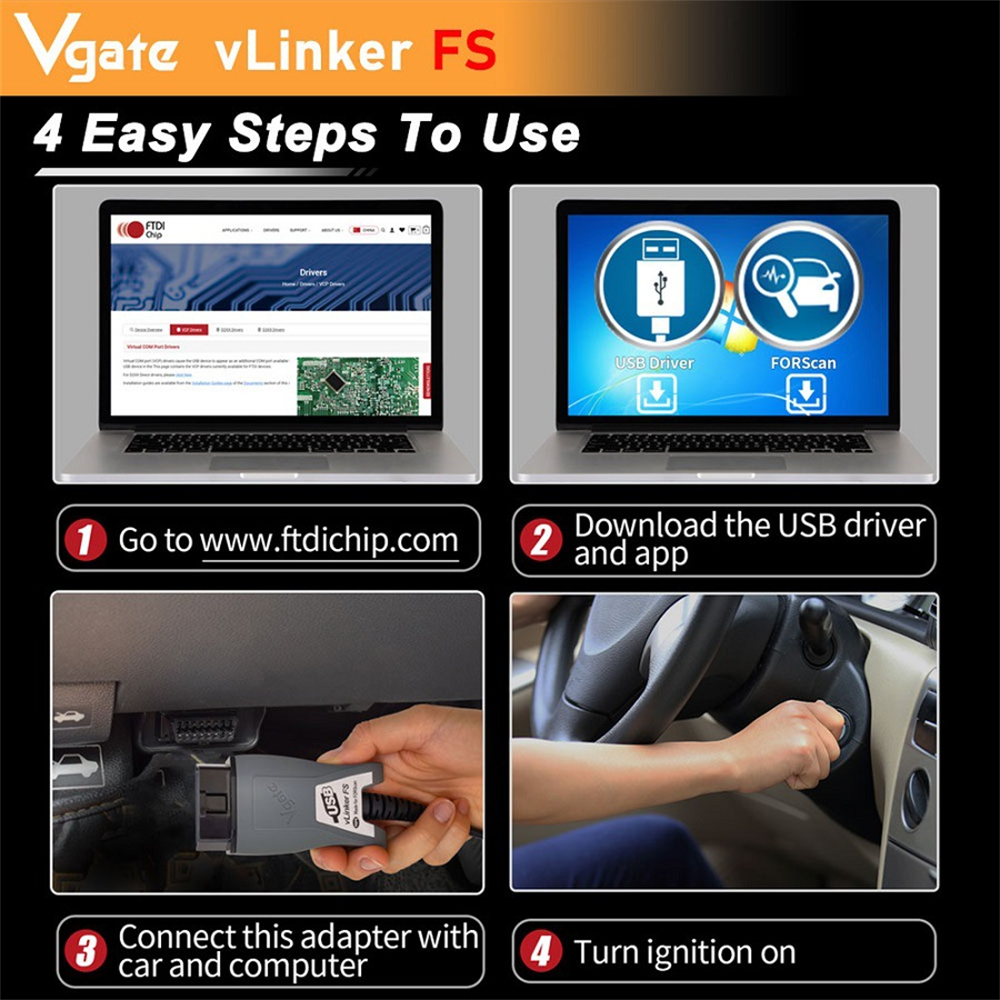 • Vgate vLinker FS ELM327 For Ford FORScan HS/MS-CAN ELM 327 OBD 2 OBD2 Car Diagnostic Scanner Interface Tools OBDII For Mazda