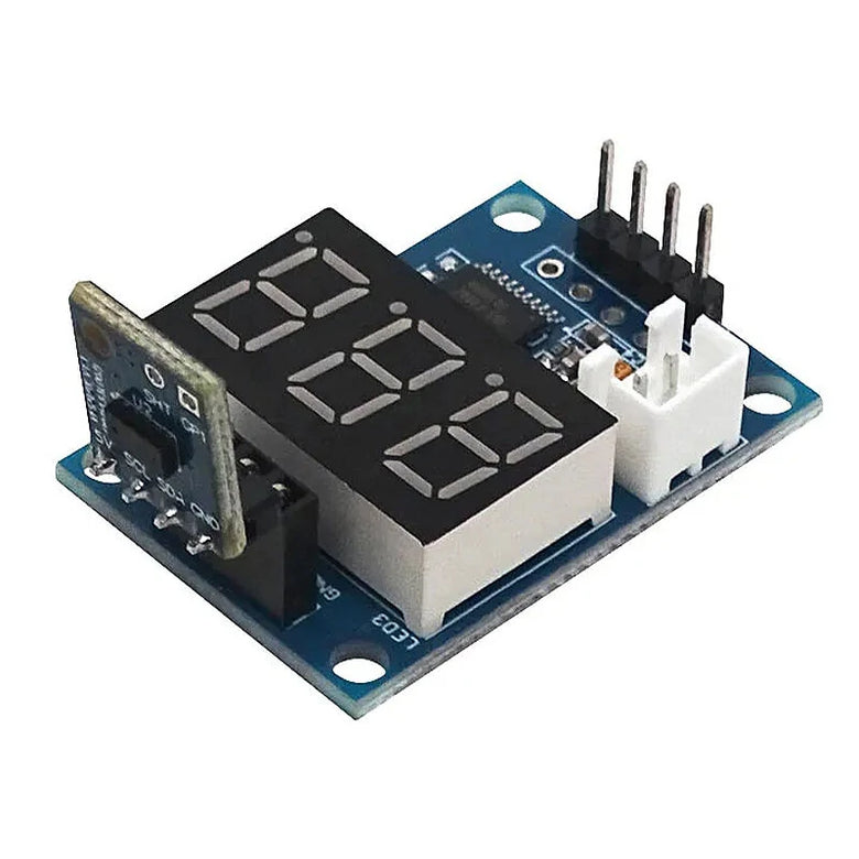PS: Size may have errors when measured manually. Connect the purchased module to your own microcontroller's C pin, refer to the routine and write the program as shown in the figure. Insert the supporting MS51 development board to display the distance. At the same time, the serial port on the development board prints distance data every second. Nixie tube display is in cm, and serial port output is in mm. The maximum measurement distance of the development board is 500mm