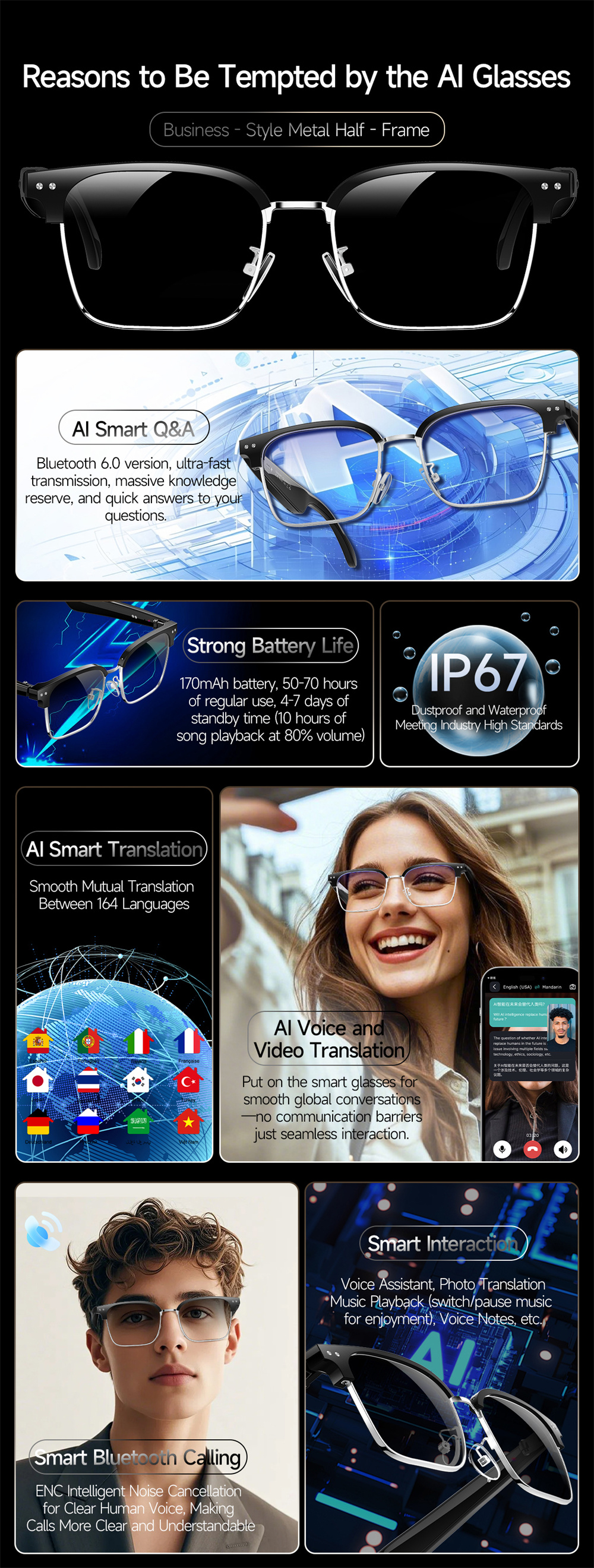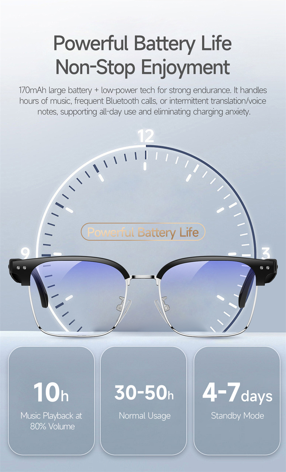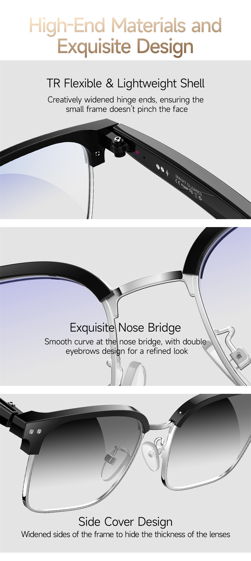 6. Automatic Power Control: Hall Switch feature enables smart power on/off by opening or closing the temples, saving energy efficiently.