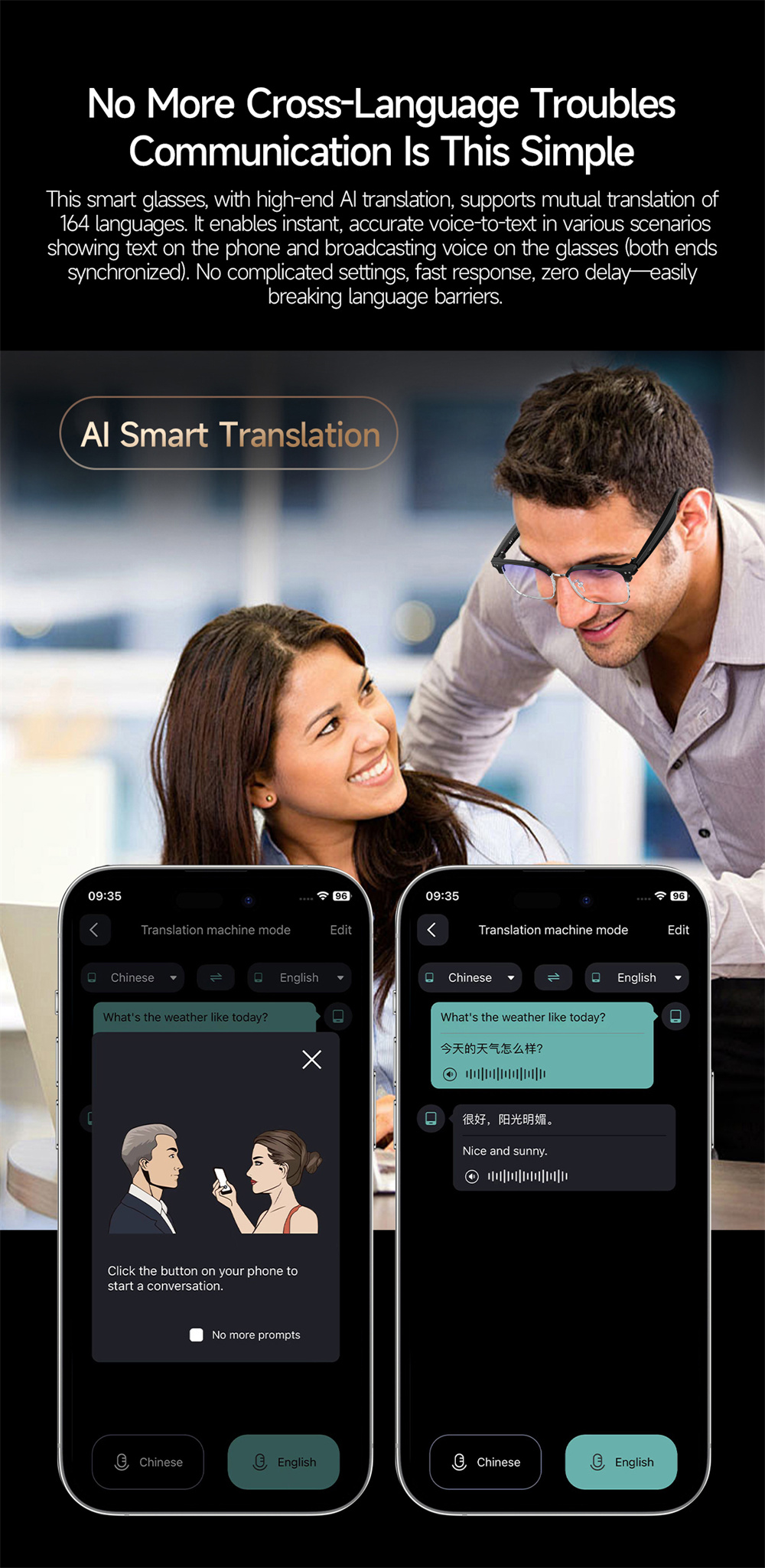 1. Real-Time AI Translation: Supports 164 languages with mutual voice and text translation using advanced AI technology, making cross-language communication seamless.