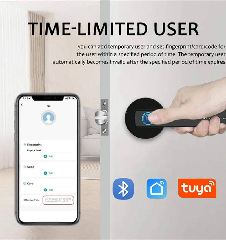 3.Remote Control and Real-Time Notifications: Manage your door lock remotely through the Tuya Smart or Smart Life apps. Receive real-time notifications and access logs to stay informed of who enters and exits your space. Share dynamic passwords with family or friends, ensuring secure a