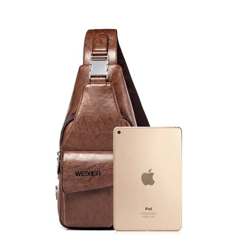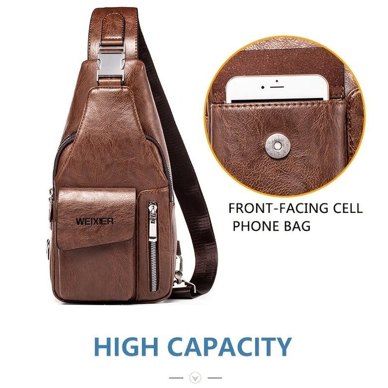 1. Stylish Design: This men's chest bag is made of high-quality PU leather, giving it a sophisticated and trendy look.