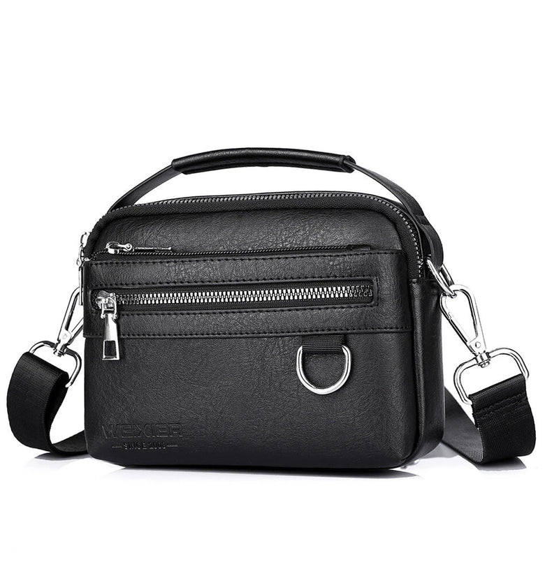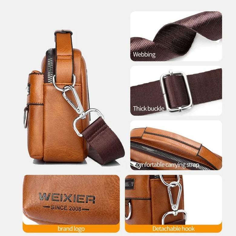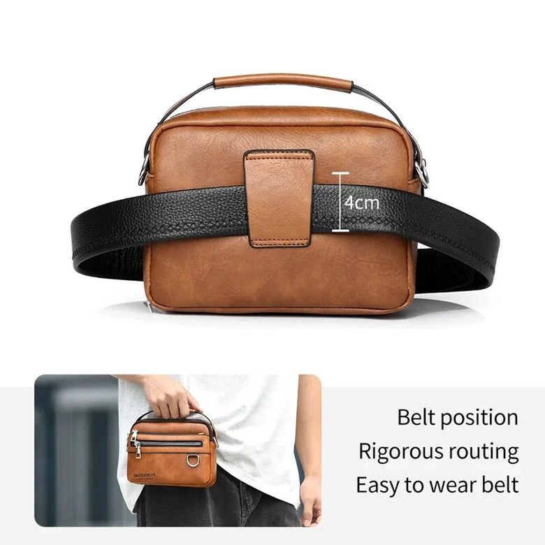• WEIXIER PU Leather Men's Small Crossbody Bag Waterproof Portable Waist Pack Fashion Travel Handbag Multi-layer Storage Single Shoulder Bag