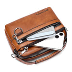 WEIXIER PU Leather Men's Small Crossbody Bag Waterproof Portable Waist Pack Fashion Travel Handbag Multi-layer Storage Single Shoulder Bag