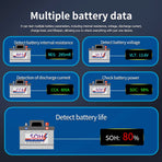 Quickly detects battery internal resistance, voltage, discharge current, charge level, and lifespan. Ensures efficient battery health evaluation within seconds using advanced diagnostics.