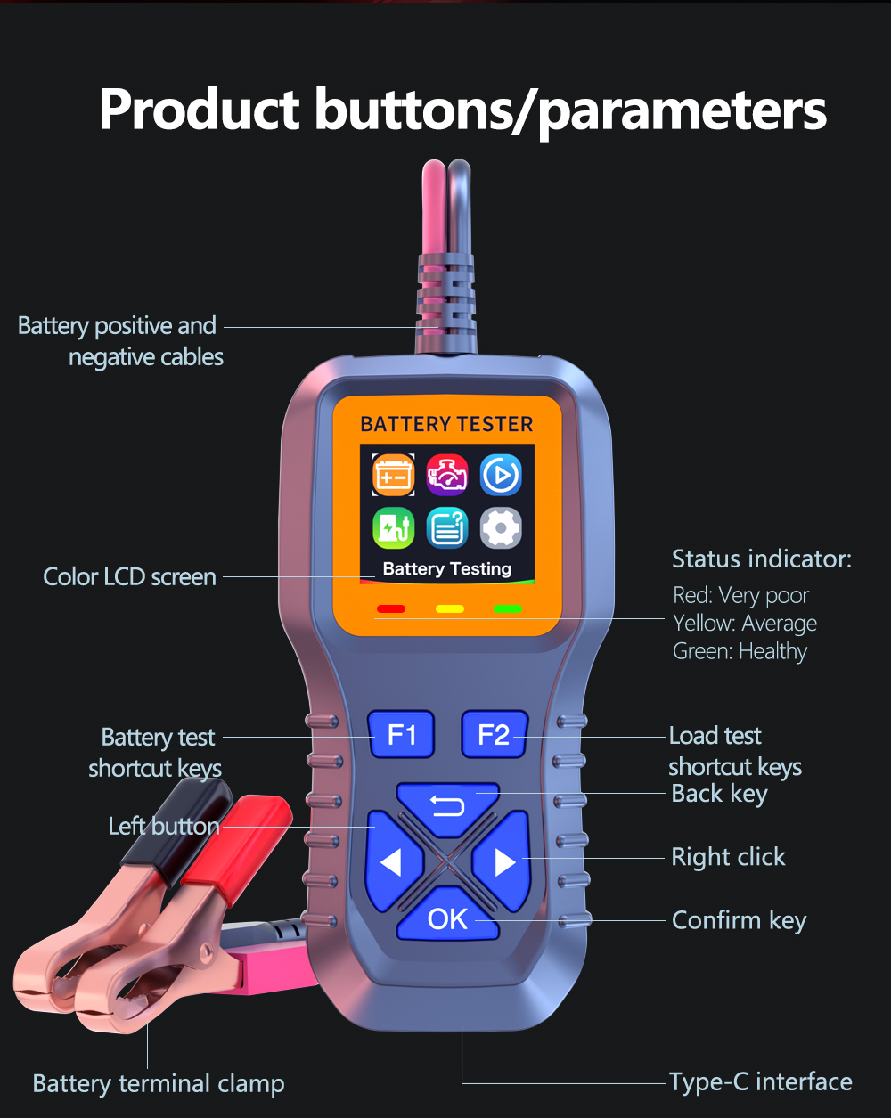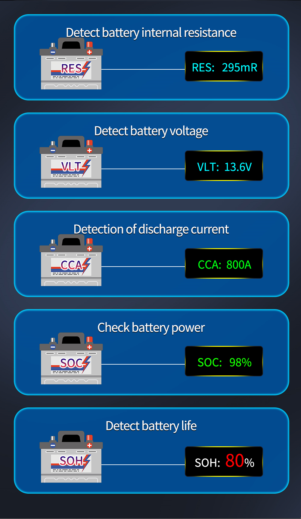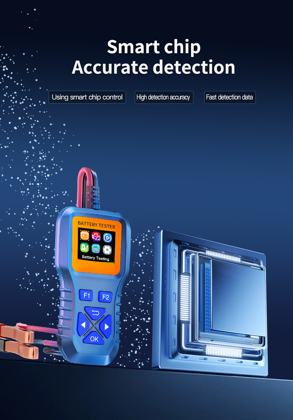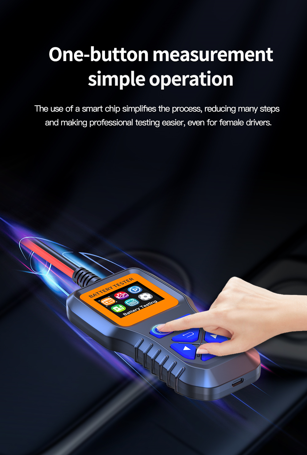 Equipped with a smart chip for user-friendly operation and high-accuracy testing. Single-button convenience simplifies battery testing and boosts efficiency.
