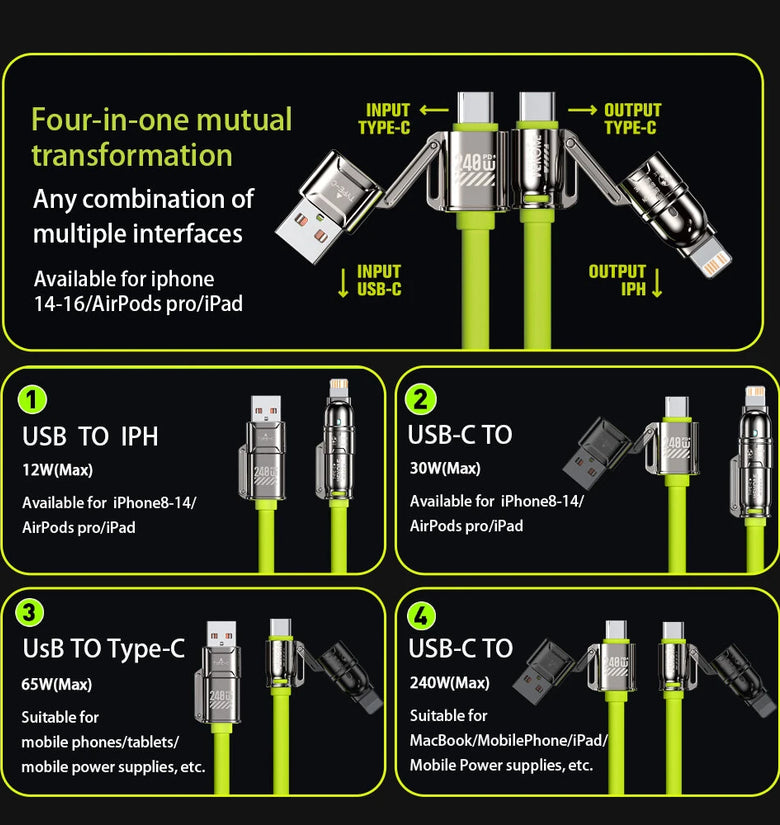 4. Dual output interface: The charger has a USB-C and iP output interface, allowing you to charge multiple devices simultaneously.