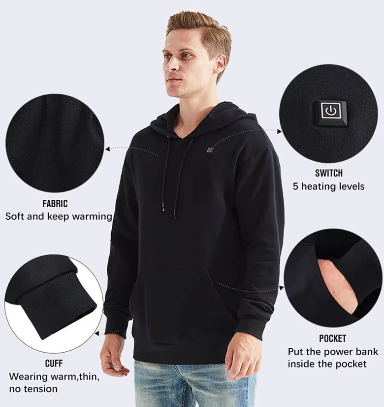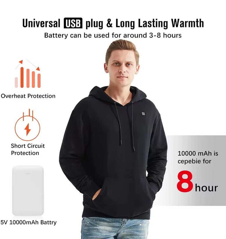 The Winter Hooded Heating Sweatshirt is designed to provide rapid and efficient heating to keep you warm in the coldest winter conditions. With its advanced USB heating technology, the sweatshirt heats up quickly, ensuring you stay comfortably warm even in extreme temperatures.