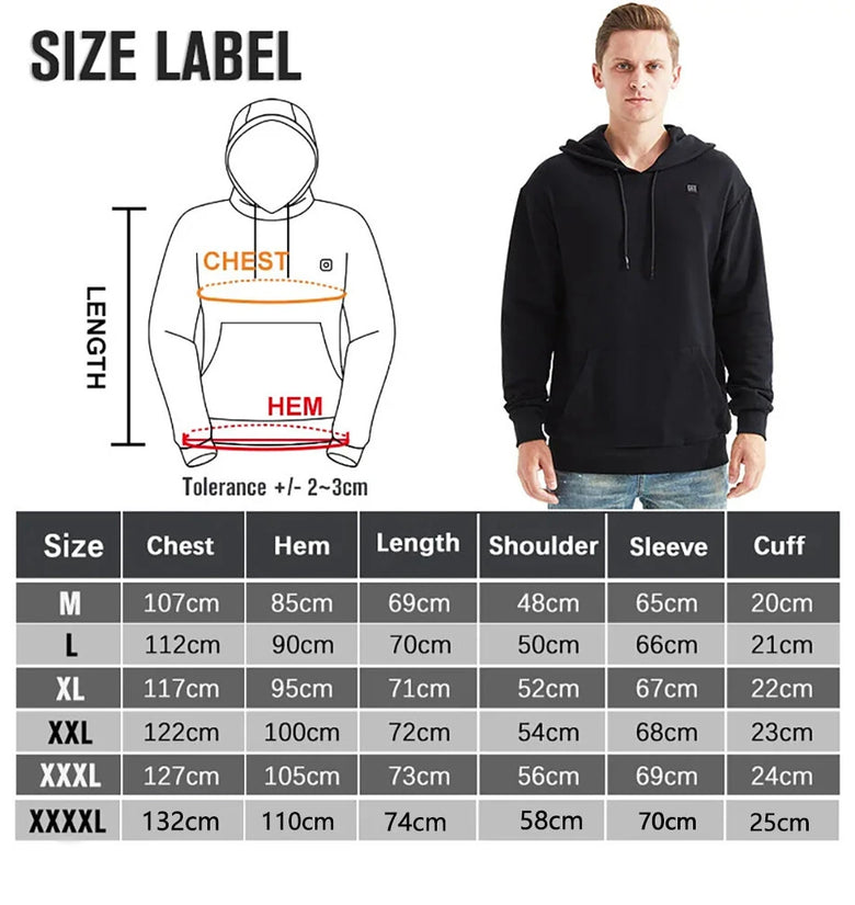 • Winter Hooded Electric Heating Sweatshirt Heated Clothes for Men USB Heating Sweatshirt Warm Motorcycle Outdoor Clothing M/L/XL/XXL/XXXL/4XL