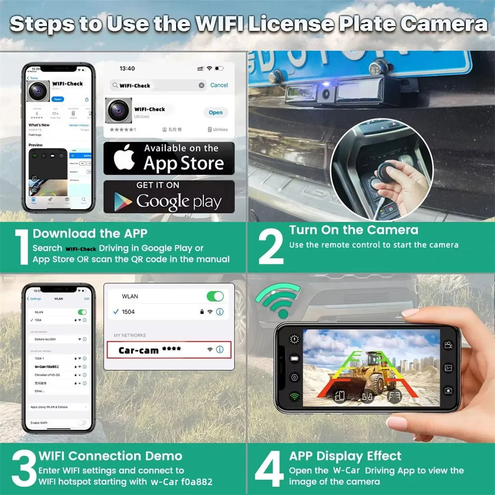 Package included:1 x Rear/Front License Wifi Camera
