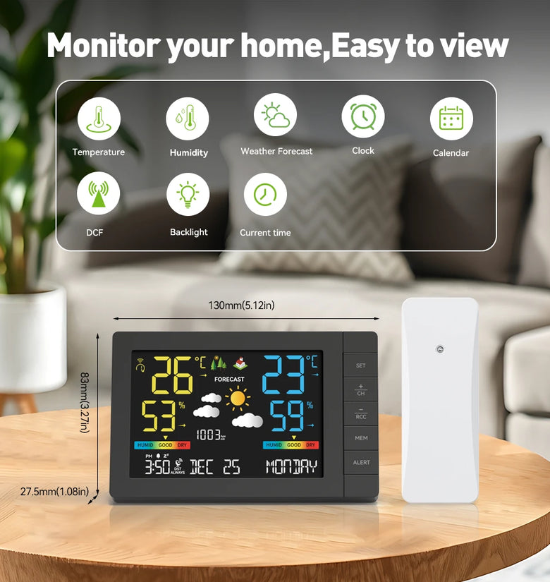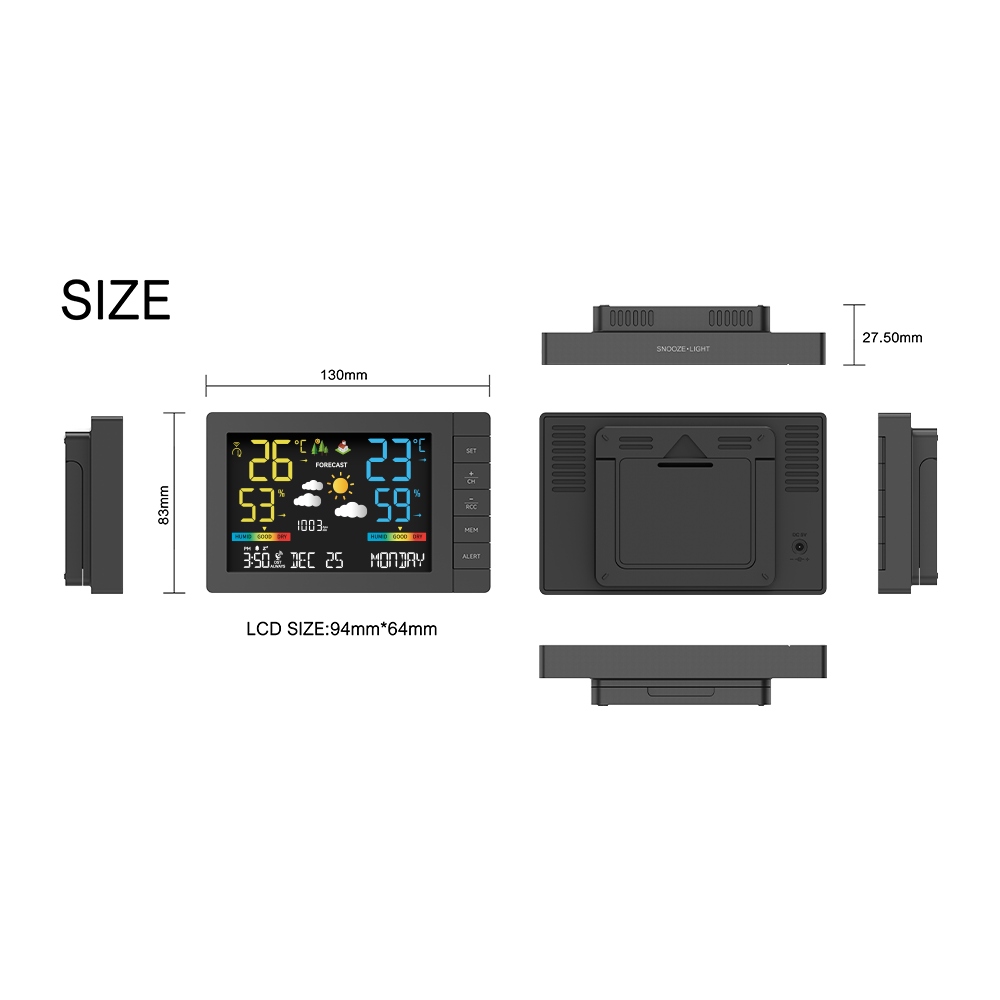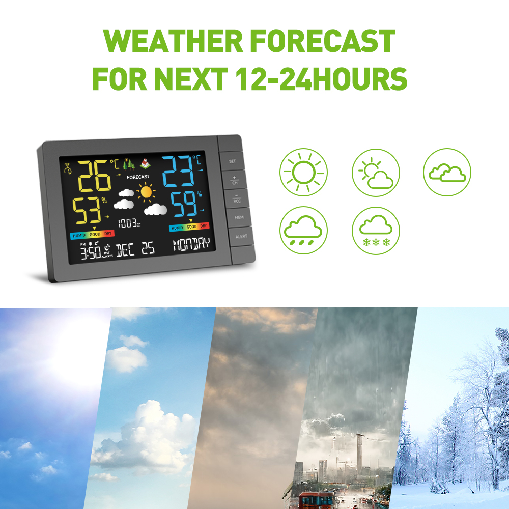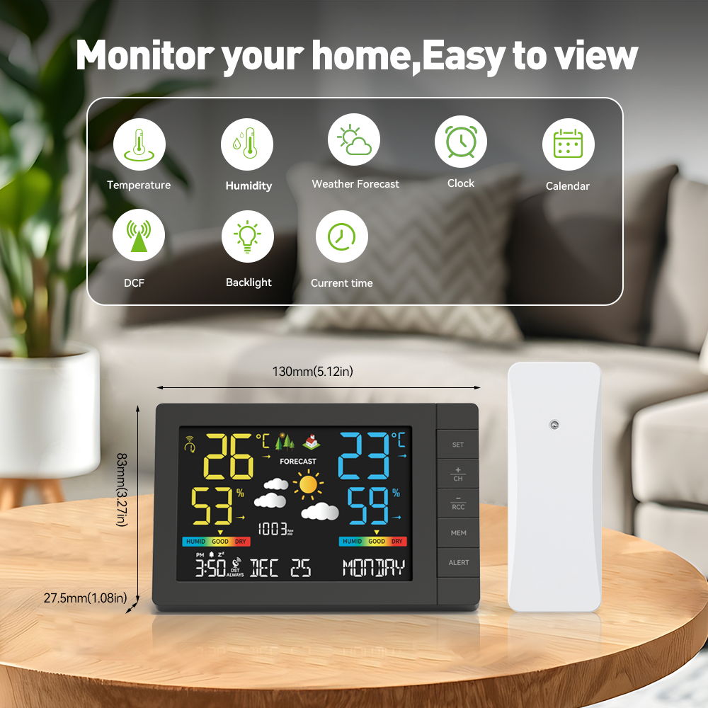 1. Indoor and outdoor temperature and humidity display;