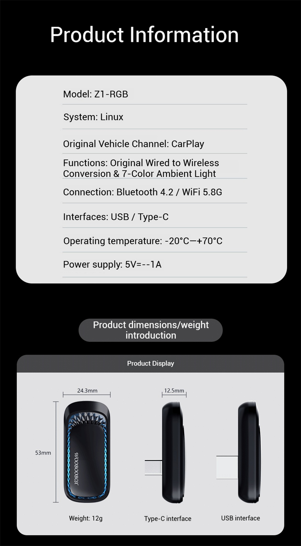 Sleek and lightweight at 12g with space-saving dimensions of 53x24.3x12.5mm, perfect for a clutter-free dashboard.