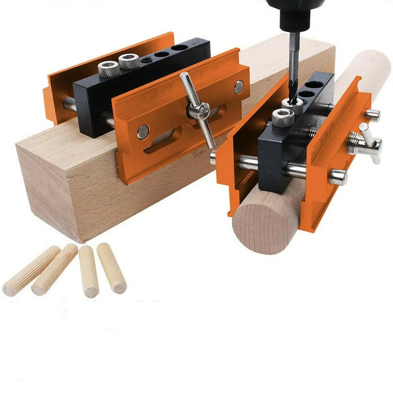 ▲ This doweling jig clamps on to workpieces for precise right angle drilling.