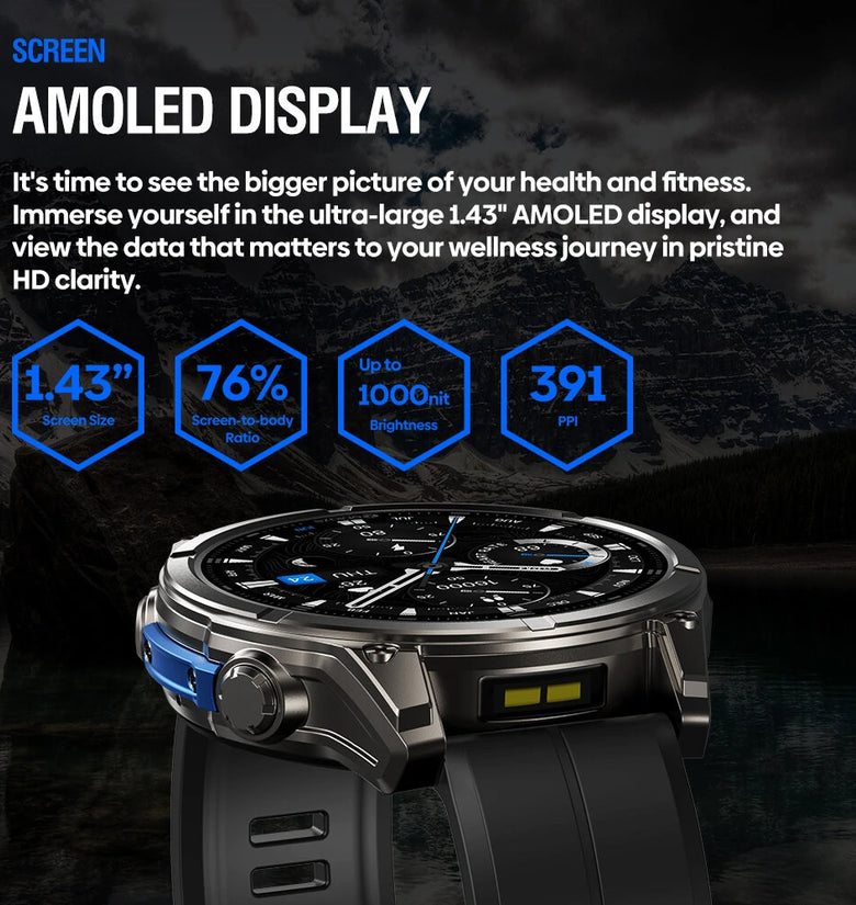 [World Premiere]Zeblaze Vibe 8 1.43-inch AMOLED 818H SapphireLens Built-in LED Flashlight 60 Days Battery Life 5ATM&IP69K Waterproof bluetooth Call Heart Rate Blood Pressure Blood Oxygen Monitor Sleep Monitoring Multi-sport Modes Smart Watch