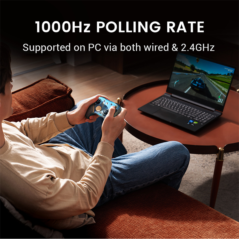 Experience ultra-responsive gaming with a 1000Hz polling rate on PC, available through both wired and 2.4G wireless connections. This ensures instantaneous input registration, reducing lag and optimizing your performance for the most competitive gameplay.