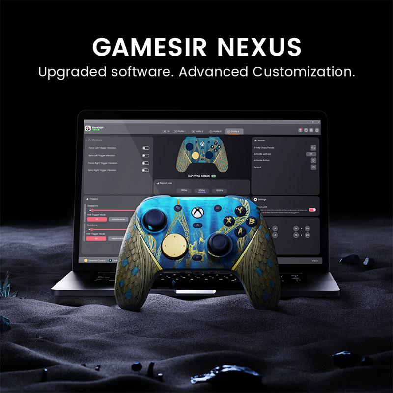 The G7 Pro Wuchang: Fallen Feathers edition is compatible with the GameSir Nexus app. It offers powerful features such as gyro settings, stick curve adjustments, and button-to-mouse mapping, giving you full control and customization to tailor your gaming experience exactly how you like.