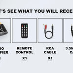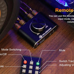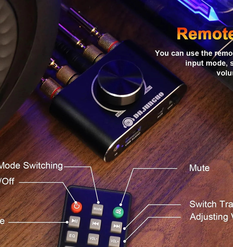 Multiple Input Modes:The X50H Bluetooth amplifier provides three input modes—Bluetooth, AUX, and USB. When all interfaces are connected simultaneously, switching between input modes is as easy as a quick four presses of the main knob.Furthermore, the X50H Bluetooth amplifier employs a hardware priority mechanism. Upon inserting AUX or USB, the Bluetooth function is automatically disabled, and the mode switches exclusively to AUX or USB. To return to Bluetooth mode, simply unplug AUX or USB or give the main knob four short presses.Additionally, the X50H Bluetooth amplifier comes equipped with a memory function. The chosen input mode before powering off will be remembered. Therefore, upon startup, the amplifier will seamlessly resume using the input mode from the previous session, ensuring a consistent and personalized user experience.Remote Control:Enhance your experience with the remote control, offering seamless control over various functions:Switch Input Modes: Effortlessly toggle between different input modes.Quick Song Changes: Swiftly switch between tracks at your convenience.Flexible Volume Adjustment: Easily adjust the volume to suit your preferences.Power Control: Effortlessly turn the amplifier on or off with the touch of a button.Experience the convenience of versatile control at your fingertips.Multifunctional Knob Design:To meet diverse customer needs, we have endowed the knob with additional functions. Different functions can be achieved by short presses of varying frequencies. For instance:Single Click: Pause/PlayDouble Click: Next TrackTriple Click: Previous TrackQuadruple Click: Switch Input ModesQuintuple Click: Activate App Function (change Bluetooth names or set Bluetooth passwords)Sextuple Click: Factory Reset (useful if the Bluetooth amplifier is mistakenly connected to another device; forcefully disconnects the wrongly connected Bluetooth device or resets the device if you forget the Bluetooth password)Long Press: Standby.Package includes:1 x X50H Audio Amplifier1 x Remote Control1 x 3.5mm Aux Cable1 x RCA Cable1 x User Manual